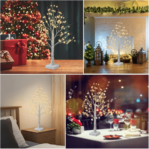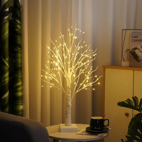 Featuring 144 twinkling warm white LEDs across 24 flexible branches, this luminous birch tree lamp adds cozy charm to any setting — from your living room to your holiday table display.