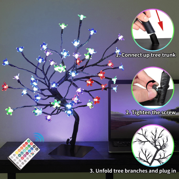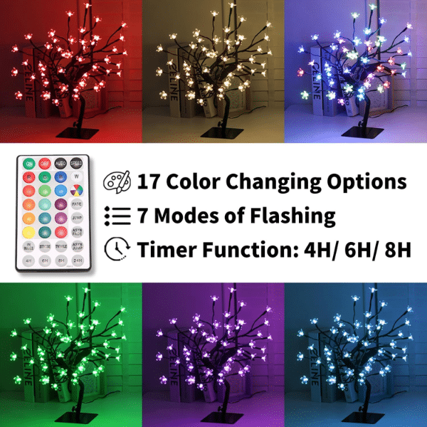 Light up your space with the 16.2-Inch RGB Cherry Blossom Tree Light, a stunning blend of color, creativity, and charm. Designed with 48 vibrant RGBW LEDs, this elegant piece brings the magic of cherry blossoms to life — whether you’re setting a romantic mood, decorating for a celebration, or adding a cozy glow to your favorite corner.
